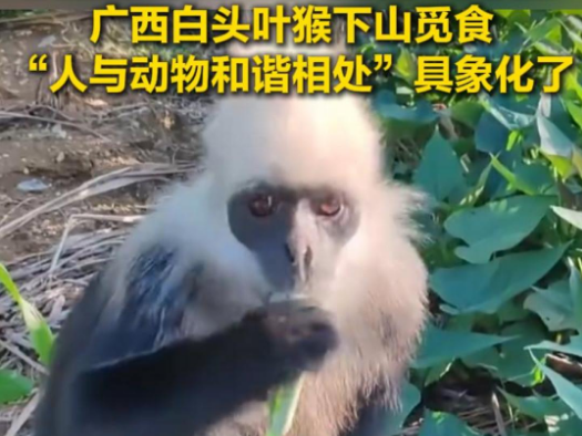 广西白头叶猴下山觅食,“人与动物和谐相处”具象化了!