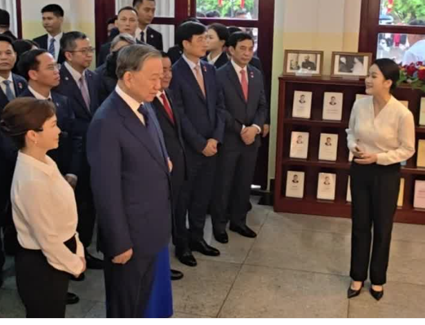 越共中央总书记、国家主席苏林参观广西南宁育才学校图片展