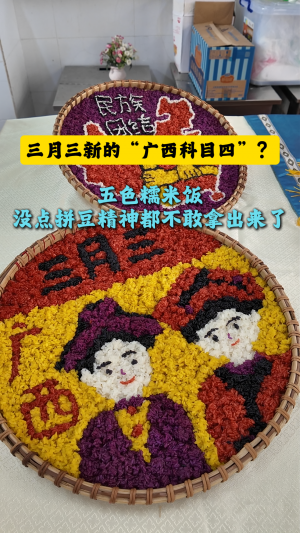 广西人做五色糯米饭又开始卷了,一粒一粒地拼很有成就感