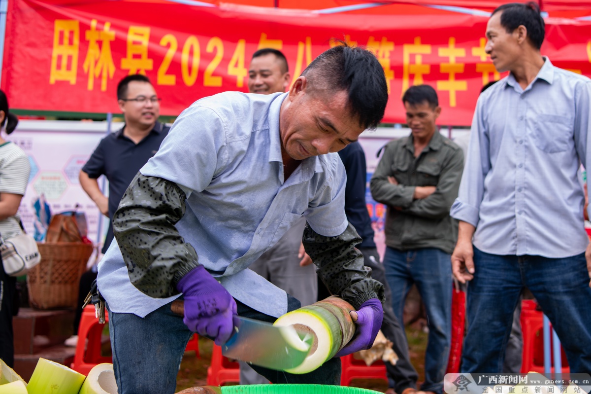 2024年八渡笋庆丰节活动。摄制:记者 凌云冲 通讯员 赵文朝 黄少鸿 广西新闻网田林7月30日讯(通讯员 卢正刚)7月29日,2024年八渡笋庆丰节活动在田林县六隆镇平细村举行,采笋竞技、“笋王”评比、“笋”产品展示、品笋宴等多个活动轮番上演,充分展示八渡笋的独特魅力,吸引众多游客和当地村民的热情参与。