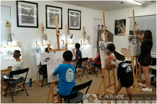中国孩子在美国美术学院学习绘画。霍晶晶 摄