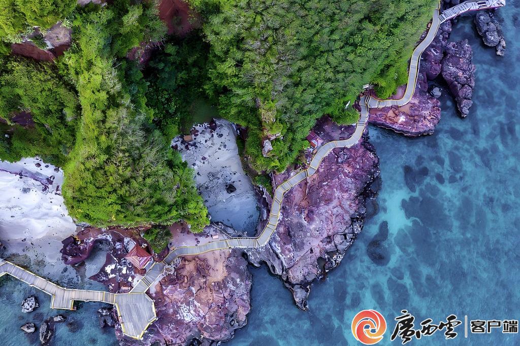 2025年7月22日广西日报6-7版“二十四节气·寻味广西|大暑”版 当7月盛夏的风拂过每一个登上涠洲岛的游客时,人们或许没有想过,这样的风,已经在涠洲岛吹了3万多年了。 3万多年前,一次火山偶然喷发,造就了今天中国最年轻的火山岛——涠洲岛。 视频来源:毕建东 视频剪辑:周 映 大暑时节的涠洲岛,海天一色,从岛上往大陆望去,隐约可见北海市区高高耸起的现代化大楼;往南看去,甚至还能看到像一条长蛇一样横亘在9海里外的斜阳岛。此情此景,让人仿佛看到了海市蜃楼。 7月的涠洲岛,首要看的便是火山岩。涠洲岛保留了火山喷发遗迹和后期风化地貌,集火山地貌、海蚀地貌、海积地貌和人工地貌于一身。2005年,涠洲岛被《中国国家地理》杂志评为“中国最美的十大海岛”之一。