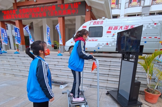 1月26日,“科技冬奥”全国科技馆联合行动暨“冬梦飞扬”主题展览专场活动广西分会场启动仪式在百色民族高级中学举行,广西科协和百色科协将科普大篷车开进校园,运用现代科学技术,将冬奥会运动项目与广西少数民族体育项目相结合,给公众带来新鲜的科普体验。本次活动由中国科协主办,中国科技馆、广西科协承办,广西科技馆、百色市科协等协办。