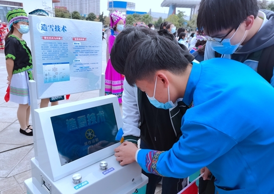 据悉,1月中下旬起,广西科技馆结合壮族民族舞蹈、踩高跷舞等独具壮乡民族特色、群众喜闻乐见的少数民族活动,以区内流动科技馆站点、科普大篷车为载体,紧紧围绕冬奥主题开展“筑梦冬奥”“燃冰逐梦”等系列科普宣传活动,带领公众从多视角认识、体验冰雪项目,感受到科技为冰雪运动带来的新魅力。