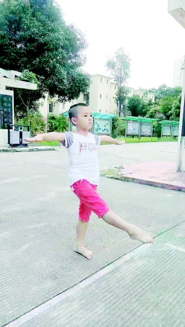 小时候的杨兰斌赤脚在院子里练习。兰玉梅供图