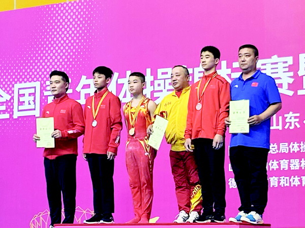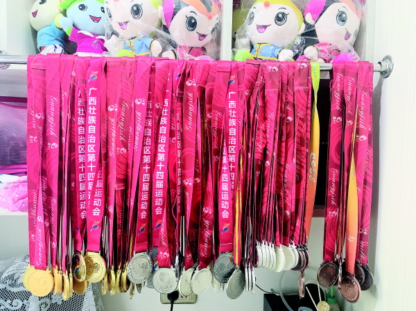 杨兰斌(左三)在领奖台上。图片来自广西壮族自治区体育局网站 近日,2022年全国青年体操锦标赛落幕,桂林13岁体操小将杨兰斌斩获5金2银(分别获得双杠金牌、单杠金牌、U14组全能冠军、U13组全能冠军、自由体操冠军,以及U14组跳马、U14组长蹦床2枚银牌),成为2022年全国青年体操锦标赛获得金牌及奖牌最多的运动员。 杨兰斌的家乡在桂林市龙胜各族自治县平等镇东社村。近日,记者走访了杨兰斌的家人和教练,分享这位被网友誉为“体操天才”的故事。 从小爱跳 跳坏了家里8张床垫 在杨兰斌的家乡,记者见到了杨兰斌的父母,却没见到杨兰斌,杨兰斌的父母说,孩子在锦标赛结束后回到体操学校,现在正按照教练的安排进行训练,积极备战下一场比赛。 听到杨兰斌获奖的消息后,平等镇东社村的村民们纷纷为这位少年点赞,也为他感到骄傲。面对村民们的祝贺,不善言辞的杨兰斌父母一个劲地感谢,脸上掩饰不住自豪。在记者问起孩子的运动生涯时,一家人一下子打开了话匣子。 家人谈起杨兰斌,满脸的骄傲,“他小时候特别爱跳,总是在床上跳来跳去,他爸爸呢也不阻拦,反正跳坏了再买新的嘛,就这样跳坏了8张床垫”,家人说完笑了起来。 母亲兰玉梅说,杨兰斌从小就很活泼好动,总是蹦蹦跳跳的,给他买的各种运动玩具都玩得很溜,像类似滑板这样的玩具,他不需要人教,也能滑得非常自如。“我们夫妻两个基本也只有周末休息才有空陪孩子,所以他想尝试的游戏和运动都会尽可能满足。” 宽容的家庭环境,让杨兰斌逐渐展现出了不凡的运动天赋,为日后的闪闪发光奠定了基础。 2012年的一天,邻居看见杨兰斌在路边蹦蹦跳跳,展现出优越的柔韧度,便建议杨兰斌父母送孩子去学体操。夫妻二人上网查阅了相关学校资料,决定让孩子去试试。这一试,正式开启了杨兰斌的运动员生涯。 意志坚定 没少哭过 却从不喊苦 杨兰斌被送到桂林体操学校开始学习体操时,只有3岁8个月。甫一训练,就展现出了良好的天赋。 想练好男子体操对于年纪尚小的孩子是一个不小的考验,当时不满4岁的杨兰斌给他的启蒙教练陈永留下了深刻印象。 陈永说,鞍马高1.05米,跳马高1.35米,双杠高1.75米,单杠和吊环高2.55米,有些器械对成年人来说都算高,但它们却是杨兰斌的训练日常。“男子体操包含自由体操、鞍马、吊环、跳马、双杠、单杠,要学的东西很多,需要有更强的意志力才能坚持下去。我带过不少学体操的孩子,但是最后能坚持下来的并不多,高强度的训练让不少孩子半道转行。” 父亲杨卫国说,刚进入体操学校的那段时间,儿子的刻苦表现让他们夫妻二人都心疼不已。即使在家休息的时候,杨兰斌也要自己练习一会儿,因为当时的条件有限,有时候找不到合适的训练场地,夫妻二人只能陪着他到院子的空地里练功。 后来,为了保证训练的最佳效果,杨卫国在房间柜子的交接处焊上了一根不锈钢管,房间的地面也全铺上了泡沫软垫,每天晚上睡觉之前,杨兰斌都要自己过去加练几组动作,穿着睡衣把下腰、劈叉、抬腿这些做完才会去洗漱。“因为他练习的时候不穿鞋,我们夫妻两人在他训练前后都要仔细打扫,生怕地上有碎屑,想起他这么小年纪光脚在地上刻苦训练的样子,他妈妈经常偷偷抹眼泪。” 但是杨兰斌却从不说苦。妈妈兰玉梅说,这么多年下来儿子没少被练哭过,有一次放假接他回家,看到儿子的眼睛红红的,就知道他在学校的时候哭过了,但是她当时忍住没说话。到家后,杨兰斌刚放下包就奶声奶气地说,“妈妈带我去练习吧。”这时候兰玉梅再也忍不住了,问儿子要不要放弃,杨兰斌却坚定地说,既然选择了学习体操,就要坚持下去。“当时他也才5岁多,但是练习时坚毅的神情却成熟得像个‘小大人’。” 因表现优异,6岁的杨兰斌被选送至广西体育运动学校体操队进行训练。在顺利通过为期一年的训练考核后,他进入了更大的比赛舞台。 记者在杨兰斌的家里看到,书柜前架起的一条横杆上面,满满当当地挂了数十枚奖牌。杨兰斌的每一块奖牌家人都会仔细整理好,这些奖牌是他十年苦练的结晶。跟金光闪闪的奖牌形成对比的,是后面书柜上摆放着的七八个玩偶。母亲兰玉梅说,每次看到这些,心里既感到骄傲又有些酸涩。“这些玩偶他很喜欢,这也让我意识到儿子今年才13岁,他从那么小的年纪一路坚持过来是多么不容易。我也很感激培养孩子的几位教练,让他能够茁壮成长。” 未来可期 不俗表现吸引国家队注意 近年来,杨兰斌参加自治区以及国内的各项比赛均获得不俗的成绩。他的教练表示,杨兰斌这次在全国青年体操锦标赛上的不俗表现吸引了国家队的注意,孩子未来可期。 在本届锦标赛上,杨兰斌的对手年龄比他大、参赛经验也更为丰富。但这位桂林小将毫不怯场,不仅高质量地完成了比赛动作,还在多个项目中展现出了不凡实力,这与桂林长期以来的在体操方面的优势不无关系。 1956年,桂林市业余体校率先在全广西设立体操班;1986年,桂林体操学校创办,先后向各级运动队输送了200余名运动员,其中61人获得“运动健将”称号,曾培养出莫慧兰、颜玮霞、侯卿等9名世界冠军,为广西体操运动向更高层次发展、为国家队输送高水平的人才发挥重要作用;1999年,我市与广西女子体操队开展共建,助力该队取得巨大突破;2017年以来,在桂林市体育局和桂林市体操学校的支持下,广西女子