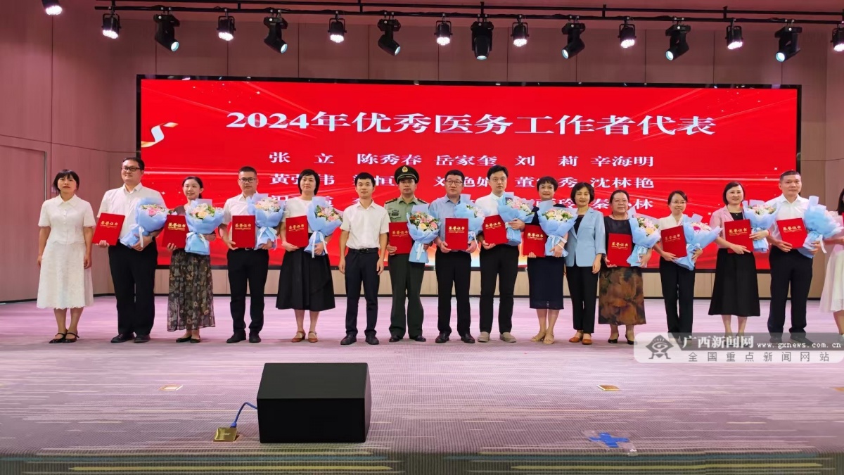 当天,大会通报了桂林市2024年优秀医务工作者表扬决定,为2024年桂林市优秀医务工作者代表颁发证书,并慰问坚守初心使命的老医务工作者和第四届广西名中医。随后,还举行新入职医师代表宣誓。紧接着是文艺表演环节,展现了医务工作者积极向上的精神风貌,诠释医务工作者“敬佑生命、救死扶伤、甘于奉献、大爱无疆”的崇高精神,激励广大医务工作者以更加饱满的工作热情、更加扎实的工作作风、更加精湛的技术水平。
