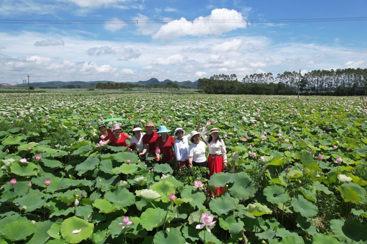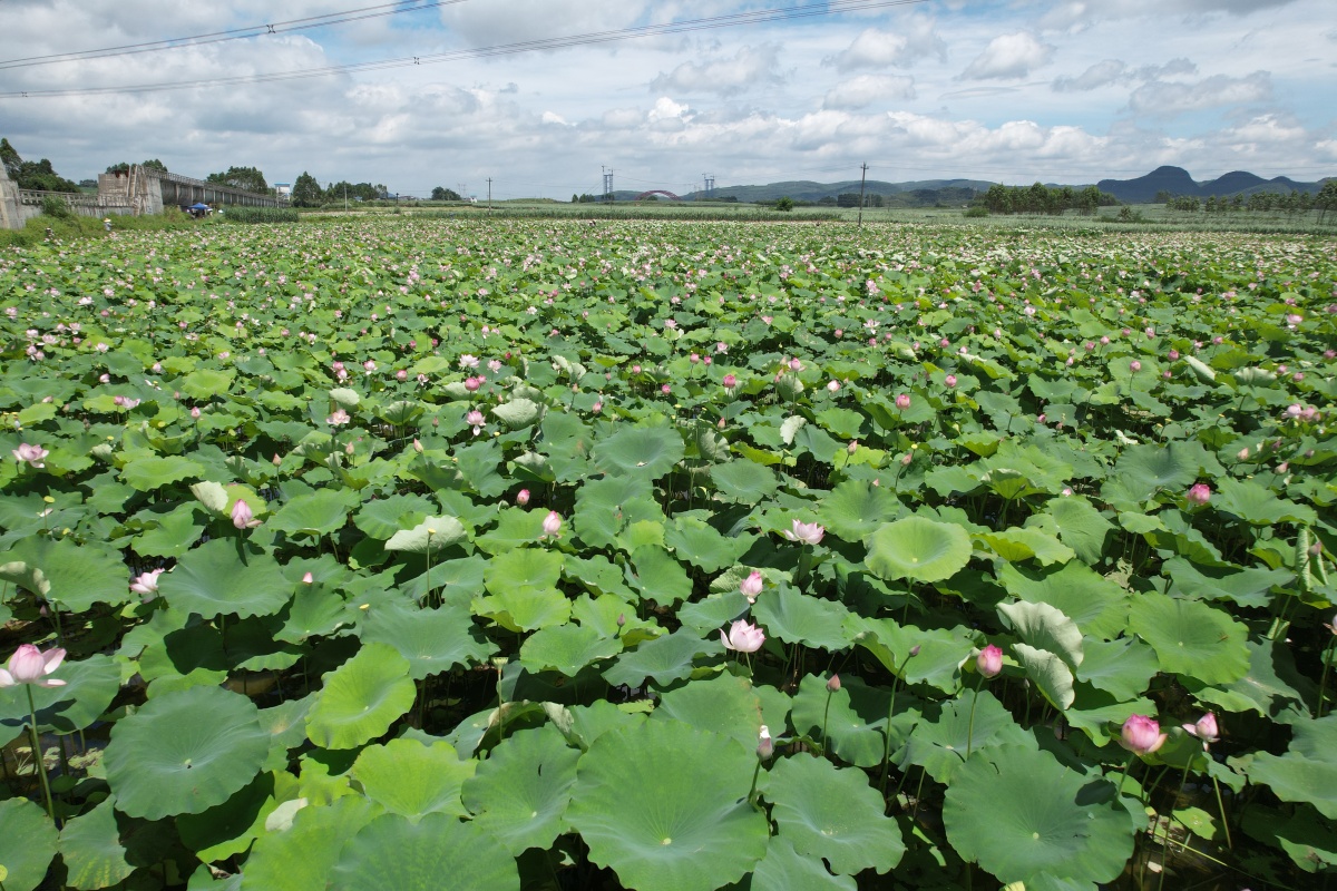 来宾市兴宾区塘权村百亩莲花开 旅客闻香来 |