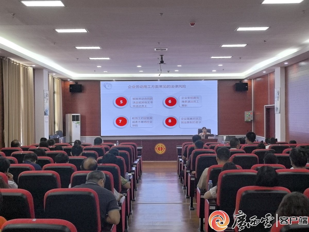 律师讲座。通讯员 吴彬 摄 活动现场,广西同望律师事务所欧秀玲律师带来精彩讲座。她紧扣市场准入、产权保护等企业高频需求,深入解读民营经济促进法相关条款,剖析法律要点,助力提升企业全员法治素养与风险抵御能力,赢得现场阵阵掌声。 当天,由柳东新区(高新区)总工会联合多单位组建的“法律大篷车”专家团队备受瞩目。专业人员现场“摆摊设点”,一对一解答企业职工在社保缴纳、劳动争议、合同纠纷等方面的热点难点问题,切实疏解困扰企业发展的“法治痛点”。