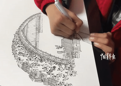 天赋型选手!13岁男孩用圆珠笔画出《清明上河图》