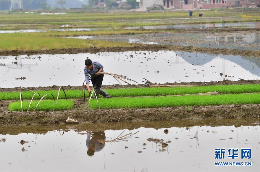 4月17日,鹿寨县平山镇孔堂村村民在田间劳作。 随着气温回升,广西柳州市鹿寨县农民抢抓农时,积极开展春耕生产。 新华社记者 黄孝邦 摄