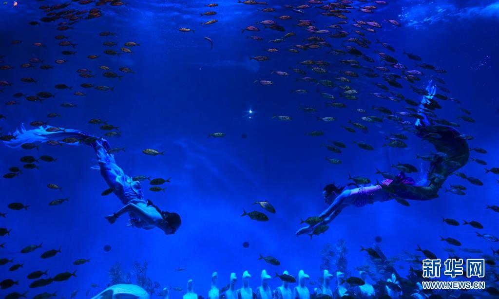 4月27日,乌克兰演员在合肥海洋世界进行美人鱼表演。 五一假期将至,六位来自乌克兰的演员在合肥海洋世界正式开启花式跳水秀、水中芭蕾、美人鱼表演等节目,吸引游客前来观赏异域风情表演。 新华社记者 韩旭 摄