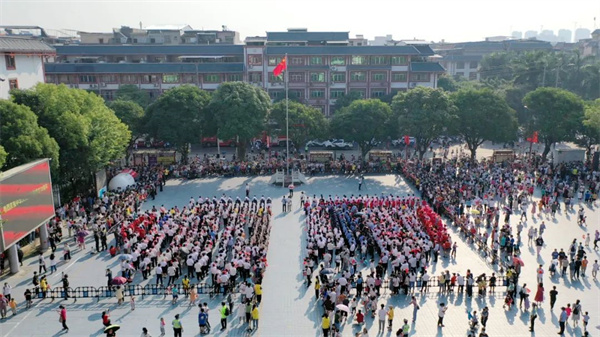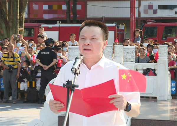 该县除了组织全县处级领导干部、各乡镇和县直单位代表参加在县人民会堂集中升国旗活动外,还在11个乡镇组织开展升国旗活动,特别是镇圩瑶族乡的11个村(社区)11个国旗工程点组织少数民族群众开展升国旗活动。