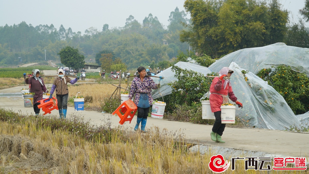 又是一年砂糖桔丰收时。走进南宁横州市百合镇武留村委上村的沙糖桔果园,看到漫山遍野的砂糖桔树上硕果累累,一棵棵砂糖桔树上挂满了黄澄澄的果实,空气中弥漫着一阵阵果香。工人们在果园里来回穿梭,有序地剪果、装果,随后进行分拣、过称、装车……呈现出一派繁忙的丰收景象。