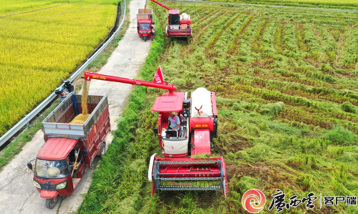 收割机将谷粒注入储粮车。 近日,平南县官成镇双马村马公岭的稻田里,收割机正来回穿梭。滚筒高速转动,稻穗被卷入后瞬间脱粒,不多久便装满了收割机的储粮桶。收割机穿过田野来到路边,通过管道把饱满的谷粒注入储粮车。 当天上午十点,一场严谨的水稻测产验收在这里进行。市、县农业农村局专家联合市气象局、国家统计局平南调查队开展现场水稻实割实测工作。称重现场,谷粒被倾倒入麻袋,农技人员精确地记录着电子秤上跳动的数字。最终,测产结果为早稻亩产量干谷605.15公斤。 “这个可以说是比较高产了。”贵港市农业技术推广中心副主任高级农艺师黄伟信介绍,该示范片主要采用增密增穗的主技术,每亩插秧量达到1.4万蔸,有效穗达25万穗,相比传统种植模式的17-18万穗大幅增加,显著带动了产量提升。 据了解,官成镇鹏程家庭农场成立于2013年,承包土地400多亩。在各级农技部门的技术支持下,农场持续使用新技术,不断提高粮食的产量和质量。自去年使用增密增穗技术后,农场的水稻亩产增加不少。 “去年已经用了增密增穗技术,今年继续应用这项技术,比往年产量高出大概100公斤左右,提高了20%。”官成镇鹏程家庭农场负责人李鹏程说。 据悉,平南县今年种植有38万多亩稻田,去年冬至今年春发生的长时间干旱,给春插用水带来困难。该县通过水库、山塘科学调配水源以及江河电灌、田头打井等措施保证了春耕用水,确保了农时。在水稻生长期间加强技术指导,帮助农户利用生物防控等技术加强科学管护,保证粮食生产高效高产。据测算,今年平南早稻总产预计16万余吨。 |
