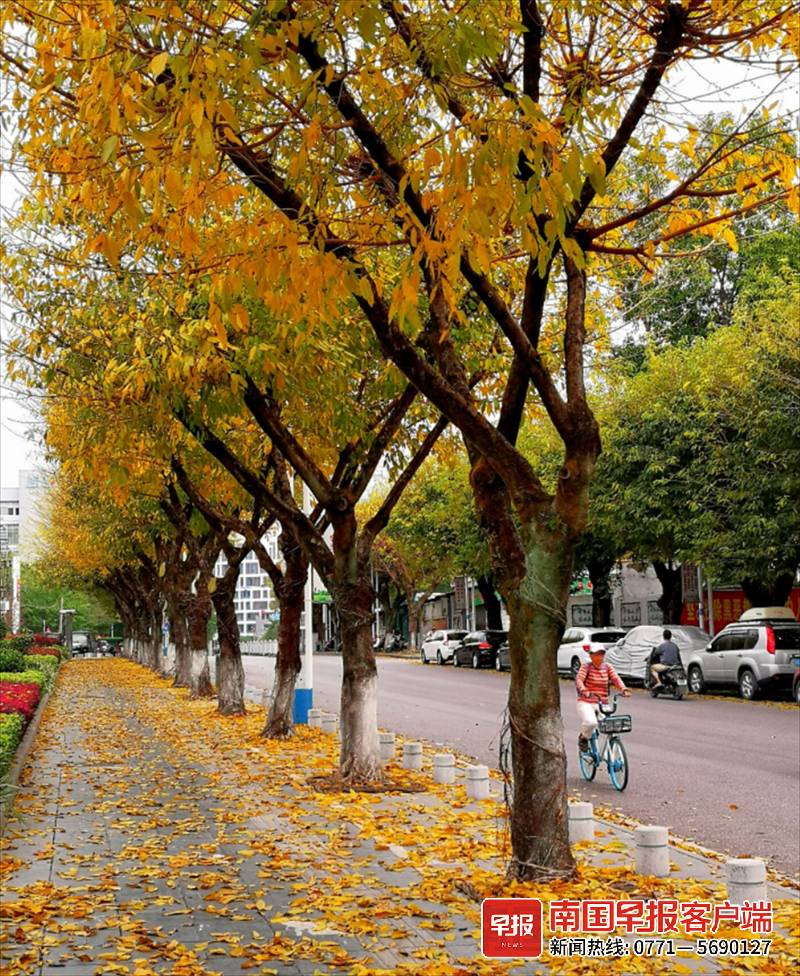 ▲桂林毅峰路的黄葛榕落叶洋洋洒洒。李腾钊 摄 据桂林市林业和园林局的工作人员介绍,树木在春天落叶,在桂林已经形成了一种独特的反季节美景。樟树、小叶榕、黄葛榕、杜英、桂花树等树种的老叶在冬天时不会落叶,装点着城市冬天难得的绿意。等到春天到来,老叶的使命完成,把春的阳光让给新叶,便迎风飘落了。