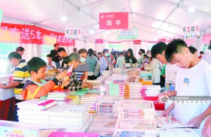 连日来,百色市田阳区在布洛陀文化广场举行“读领风尚 书香八桂”全民阅读公益活动,吸引众多市民前来看书购书,营造浓厚的全民阅读氛围。黄国顺 摄(广西新闻网-广西日报)