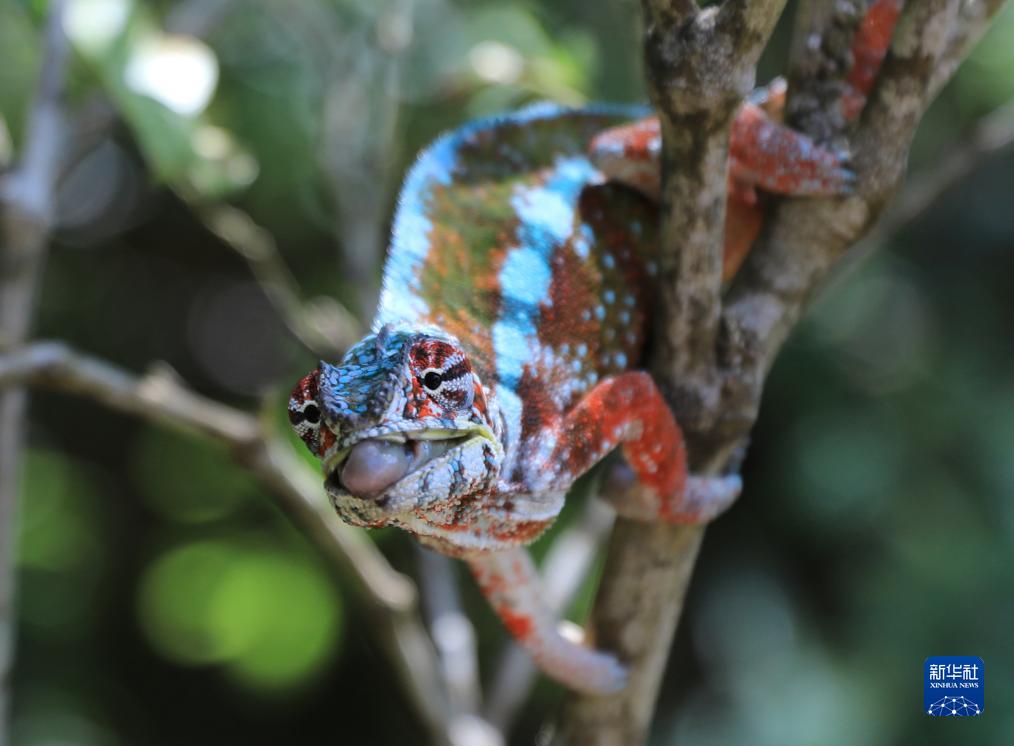 这是11月27日在马达加斯加马罗泽沃村蝴蝶谷拍摄的变色龙。 马达加斯加是生物多样性最为丰富的国家之一。世界上有150种左右变色龙,其中约一半分布在马达加斯加。 新华社记者 董江辉 摄 这是11月27日在马达加斯加马罗泽沃村蝴蝶谷拍摄的变色龙。 马达加斯加是生物多样性最为丰富的国家之一。世界上有150种左右变色龙,其中约一半分布在马达加斯加。 新华社记者 董江辉 摄