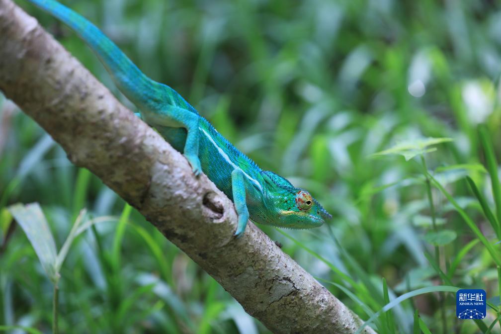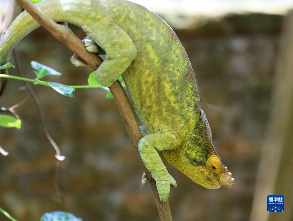 这是11月27日在马达加斯加马罗泽沃村蝴蝶谷拍摄的变色龙。 马达加斯加是生物多样性最为丰富的国家之一。世界上有150种左右变色龙,其中约一半分布在马达加斯加。 新华社记者 董江辉 摄