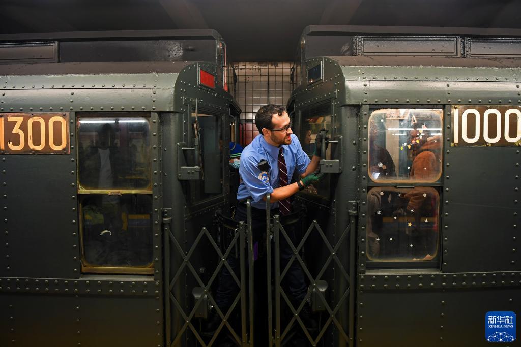 12月2日,在美国纽约,一名工作人员在“怀旧地铁”专列到站后招呼乘客上车。 当天是纽约“怀旧地铁”专列2023年首次运行的日子,不少人前来搭乘这趟列车,体验时光回溯的奇妙感觉。今年的“怀旧地铁”专列由8节1932年至1977年间使用的车厢组成,运行路线为纽约曼哈顿第二大道站至145街站,运行时间为12月每个周六的特定时间。 |