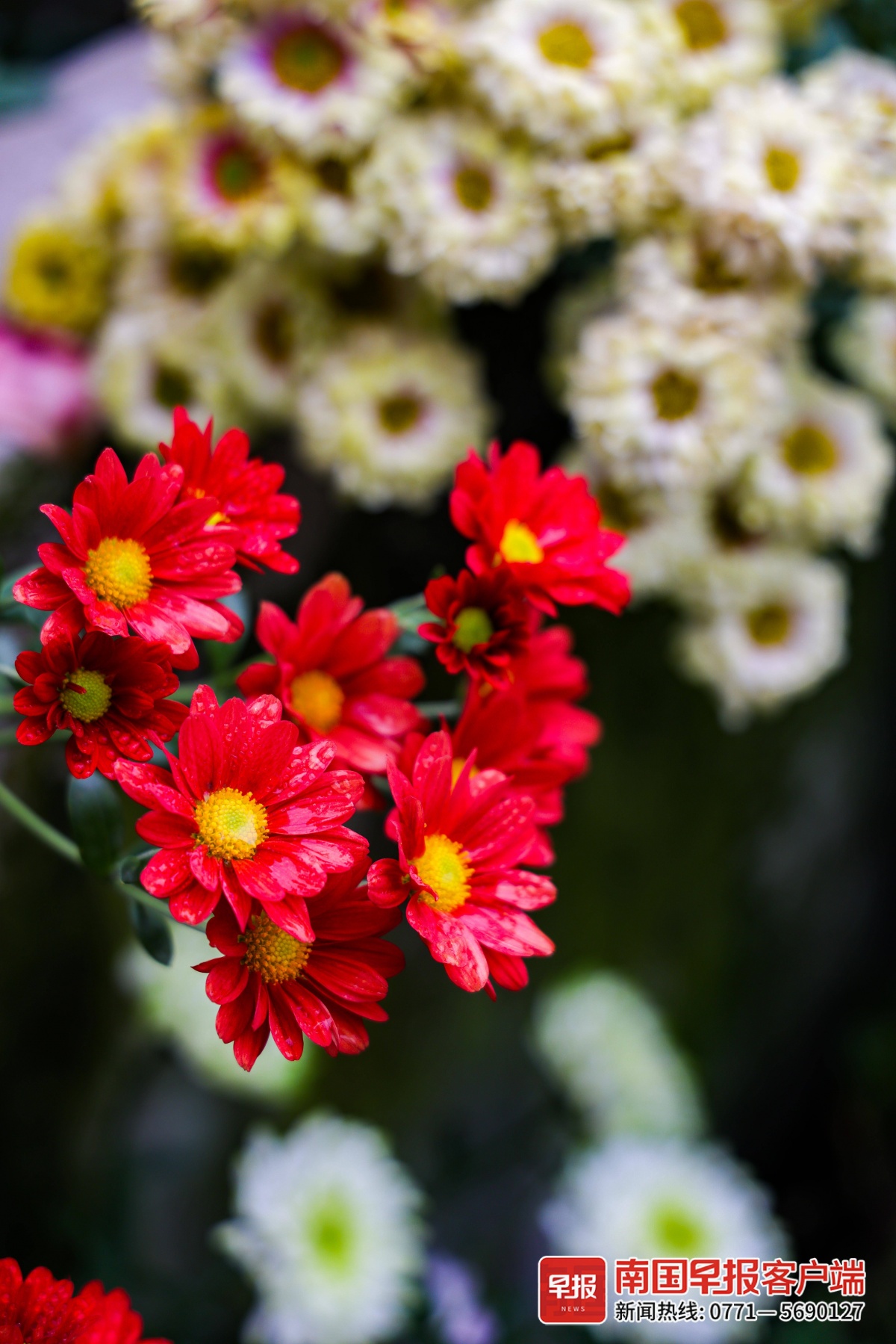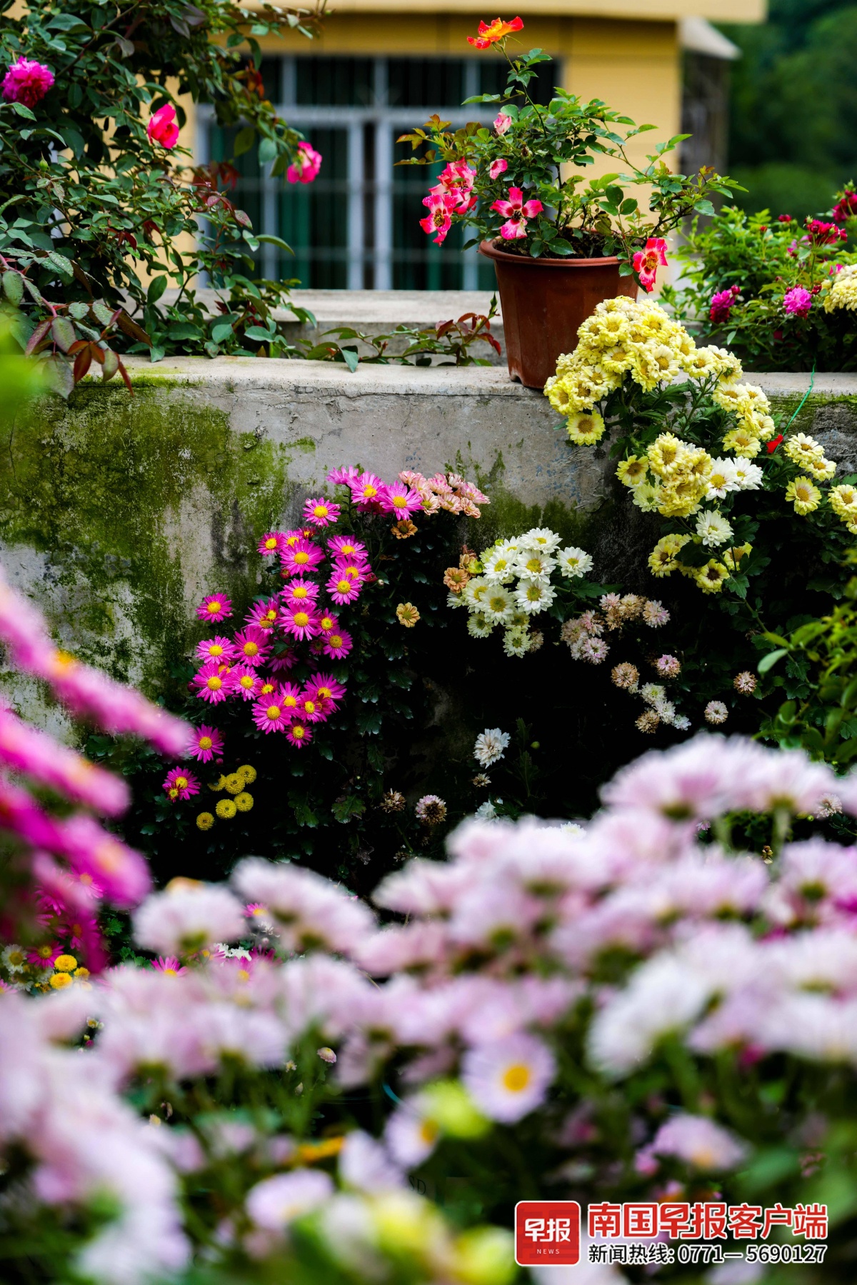 一年四季花常开 品种繁多乱人眼 12月6日,记者来到陈芳家的露台花园看到,低处摆放着色彩缤纷的菊花,架子上摆满了争奇斗艳的月季花,蓝雪花在不起眼的角落爬满墙壁,一旁的藤本月季占领高处的栏架…… ▲楼顶花园美景。记者 游拥军 摄 在约100平方米的楼顶露台里,高低错落摆放了上百盆花卉,品种多到让人应接不暇。有的迎着骄阳花开正艳,有的藏在绿叶含苞待放,有的躲在角落吐露芬芳。盛开的鲜花布满整个露台,有种“春色满园关不住”的既视感。