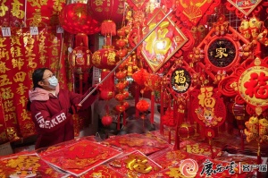 临近春节,柳州市融水苗族自治县各族群众纷纷购买红灯笼、中国结和春联等新年饰品,到处是红红火火的喜庆景象。图为2月5日,市民选购新年饰品。通讯员 龙涛 摄(广西日报-广西云客户端)