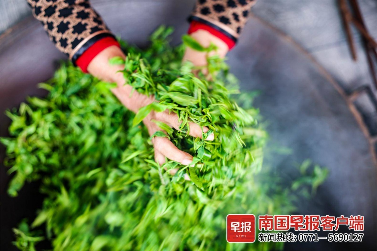 ▲炒茶。记者 游拥军 摄 坚守技艺的道路,并不是一帆风顺的。在时代洪流的冲击下,韦洁群用初心和努力守护了六堡茶。1986年,六堡公社茶厂因一次生产事故倒闭。韦洁群说,当时六堡茶的价格很低,质量好的一级茶叶大概每公斤只能卖到6.4元。加上村里交通不便,六堡茶很难往外销售。困境下,村民陆续砍掉茶树,改种更值钱的八角、桉树。韦洁群早已把茶叶看作自己生命的一部分,舍不得砍掉家里的老茶树,她说:“世世代代流传下来的制茶手艺,不能在我这一代断掉。”为了维持生计,韦洁群夫妇承包了一辆村里去梧州的中巴车,开了一间小杂货店,用挣来的钱去收茶叶。待经济状况好转后,夫妻俩停掉其他生意,专注制茶工作,成立了黑石山茶厂。在两人的精心经营下,茶厂的名气越来越大,各种品质上乘的六堡茶销往全国各地。