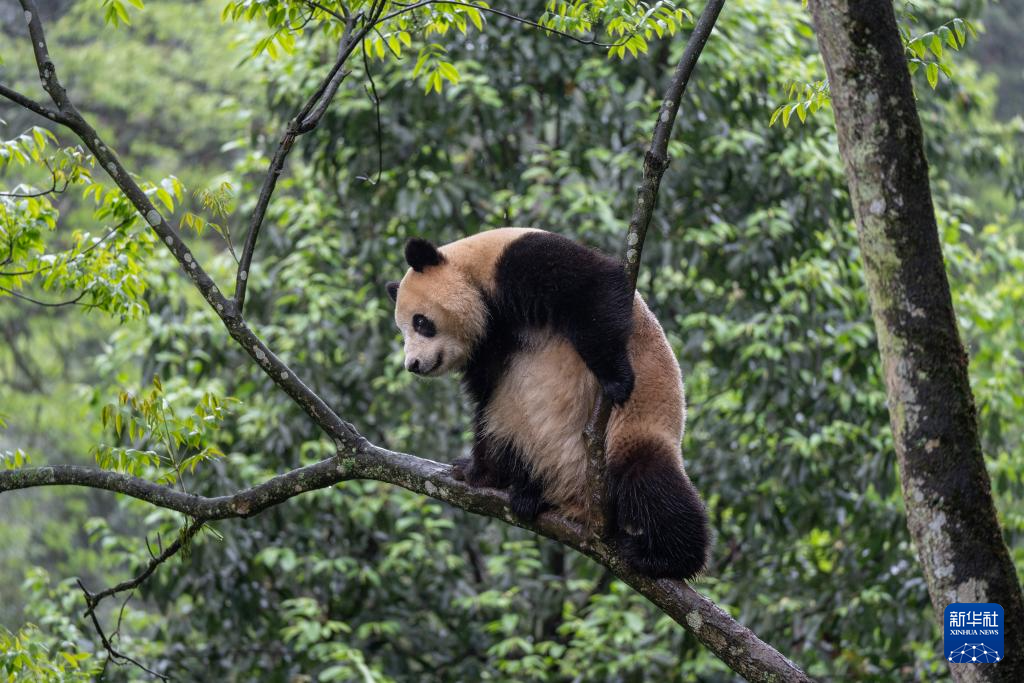 这是4月18日在中国大熊猫保护研究中心雅安碧峰峡基地拍摄的大熊猫“鑫宝”。