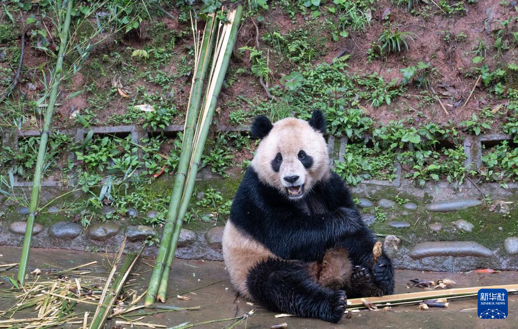 这是4月18日在中国大熊猫保护研究中心雅安碧峰峡基地拍摄的大熊猫“云川”。