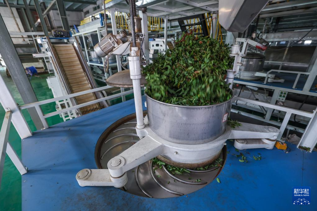 8月11日,云玺茶叶共富工坊的茶叶加工车间内,制茶机正在加工茶叶。新华社记者 徐昱 摄