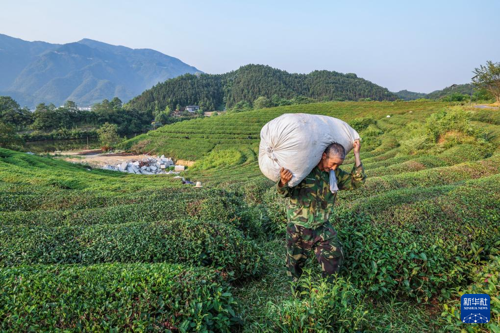 8月11日,茶农在搬运刚采收打包的夏茶。新华社记者 徐昱 摄 近日,浙江省建德市乾潭镇仇村村云玺茶叶共富工坊的加工车间内茶香四溢,工人们忙着加工采收回来的夏茶鲜叶,每天可处理鲜叶1万多斤。 云玺茶叶共富工坊是一家以有机茶叶生产加工为主导的企业。近年来,工坊通过对农户进行技术指导,为农户提供免费加工设备等方式,为仇村村的村集体经济年均增收10万元,并带动乾潭镇胥溪沿线5个村的茶叶种植户年均增收200万元。