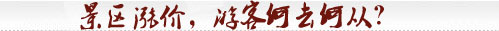 >>>景区涨价,百姓伤不起,人心丢不起 随着旅游旺季到来,旅游市场正在悄然间升起一股涨价潮,各景点门票开始跟风提价。对这种不理智的涨价行为,景区玩不起,百姓伤不起,人心丢不起!全面涨价是鼠目寸光的短视行为。 也许,涨价是这个时代不能避免的话题,但相对于其他行业,旅游市场盲目跟风涨价潮有失理智。一心只想着利益最大化,想方设法在游客身上多赚钱,这种心理暴露出旅游市场一种唯利是图的扭曲心态,必然使得原本脆弱的旅游市场陷入窘境。 这种以获取高额利益为目的而缺失惠民意识的提价,只能短暂给旅游行业注入“暴利”,难以长久。跟风涨价潮虽然一时能提升以门票为代表的“旅游GDP”收入,但是无疑在损伤全民旅游的热情,变相破坏旅游市场。【详细】 >>>把运营成本增加转嫁到游客身上不厚道 作为业内人士的江西某旅行社负责人如是直言不讳:“一家三口出游,一张景区通票动辄一两百元,相当于大多数人两天的工资,再加上餐饮、交通费的支出,低收入人群还真是玩不起。”事实上,姑且不论成本上涨因素大可以藉以降低成本、增加服务、增加产品等途径消弭,从来就不必在涨价“一棵树上吊死”;一味迷信和专注于跟风涨价,势必导致事主降低对景区提升服务质量增加连带产品的关注。旅游景门票区价格一再飙升,一味把运营成本增加悉数转嫁到游客身上,不公不算厚道,而且势必造成恶性循环从而将更多游客阻挡于景区之外,最终景区也会失去自己的竞争力和吸引力,这种行为无疑将危害国内旅游业长远发展。就经营理念窥,这显属缺乏远见的短视行为。【详细】