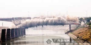 桂平二线船闸上引航道原交通桥主桥被成功爆破(图)