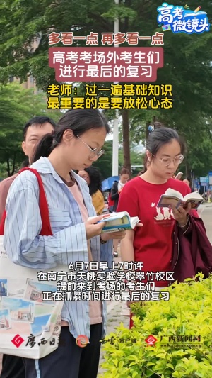 高考微镜头|考场外 考生们在争分夺秒复习知识点