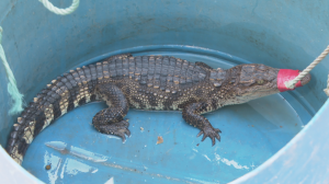 南宁横州一男子捕获鳄鱼 渔政部门妥善安置