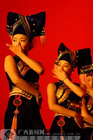 百色民族风情表演迎接远方客人。记者梁凯昌摄