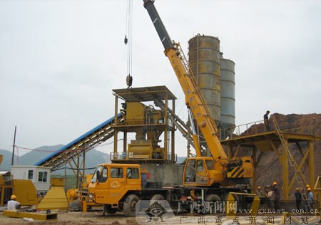 岑梧高速公路路面A标国庆节紧张安装调试拌合站。吴燕摄