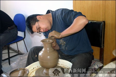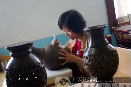 广西新闻网七台河9月24日讯(记者杨东)龙江黑陶经历岁月与呵护,因为其愈黑、愈亮、愈显黑的价值和收藏空间,被誉为“龙江瑰宝”、“黑土奇葩”。24日上午,第二届网络媒体龙江行采访团来到黑龙江省勃陶实业有限公司参观。