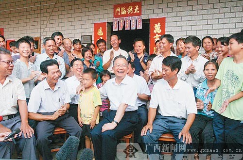10月4日至5日,中共中央政治局常委、国务院总理温家宝在广西考察。图为10月5日,温家宝在钦州市钦南区康熙岭镇高沙村看望群众。记者 刘宇摄