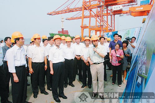 10月4日至5日,温家宝和随行的国家发改委主任张平,商务部部长陈德铭,国务院政策研究室主任谢伏瞻,国务院副秘书长、总理办公室主任丘小雄,国务院副秘书长项兆伦等,在自治区党委书记、自治区人大常委会主任郭声琨,自治区主席马飚和自治区党委副书记、秘书长陈际瓦等陪同下,来到北海、钦州、防城港等地,深入永昶科技电子有限公司、广西长城计算机有限公司等企业车间,国投钦州电厂煤炭码头、钦州中石油千万吨级炼油项目施工现场、防城港20万吨码头和钦州市钦南区康熙岭镇高沙村,了解北部湾地区的开放开发情况,看望各族各界群众,和大家共商经济社会发展大计。