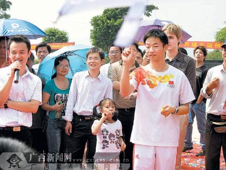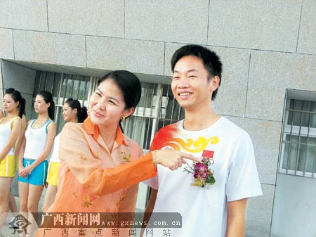 这位怯生生的小伙子就是在北京奥运会上获得射箭男子团体铜牌的广西籍运动员李文全。22岁的他经历过奥运会那么大场面的洗礼,却并没有做好在日常生活中被众星捧月的准备,人们越是对他表示崇拜,他笑得越尴尬,十分可爱。