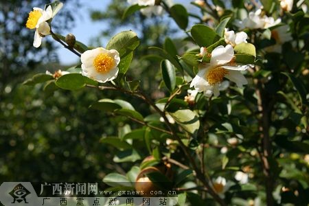 这是在凤山县随处可见的茶油果子,油茶花与油茶果。记者 邓昶摄