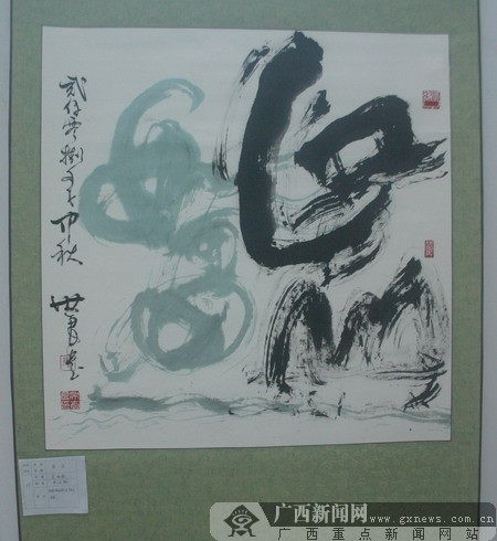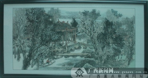 广西艺术学院研究生黄安生中国山水画《秀水所见》。记者 伍永志摄