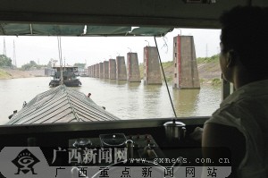 船舶驶进桂平船闸。