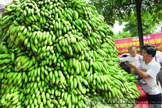 6个人花费6小时搭建而成的香蕉堆