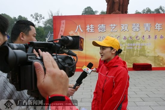 集结号团员,广西第五代“刘三姐”、青年演员王予嘉接受记者采访。广西新闻网记者 邓昶摄