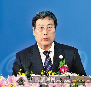 广西是中国面向东盟的重要门户和前沿地带,中国积极支持广西加快经济社会发展和北部湾经济区开放开发,构筑国际区域经济合作新高地,搭建更多中国与东盟合作平台,在中国-东盟自由贸易区中发挥更大作用。此次中国-东盟自贸区论坛在广西举办,为我们提供了良好平台和难得的机会。希望各位嘉宾充分利用这一平台,加强交流、增进了解、广泛探讨,为推进中国-东盟自贸区继续深化发展作出新的贡献。