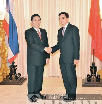 1月14日上午,自治区党委书记、自治区人大常委会主任郭声琨在泰国总理府拜会了泰国总理阿披实。 刘 宇/摄