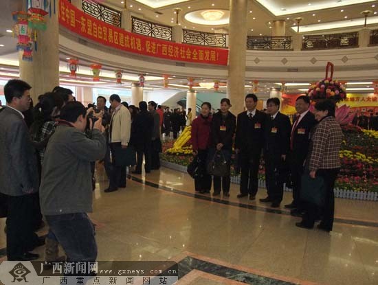 广西新闻网南宁1月26日讯(记者 王文英 实习生 何金梦)1月26日上午,自治区政协十届三次会议在广西人民会堂隆重开幕。政协委员们汇聚一堂,兴高采烈的在会场合影留念,鲜花映衬着一张张笑脸,整个现场呈现出一派喜庆、祥和的气氛。