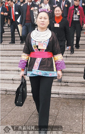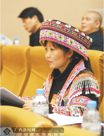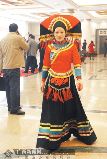 广西是以壮族为主体的少数民族自治区,也是全国少数民族人口最多的省(区),境内居住着壮、汉、瑶、苗、侗、仫佬、毛南、回、京、彝、水、仡佬等12个世居民族。在“两会”期间,来自广西各地的少数民族人大代表、政协委员,带着各地少数民族同胞的期许,在同一时间汇聚了同一个地方——首府南宁。于是,在昨日的“两会”现场,记者把镜头对准了那些身着极具特色的少数民族服饰的人大代表、政协委员。